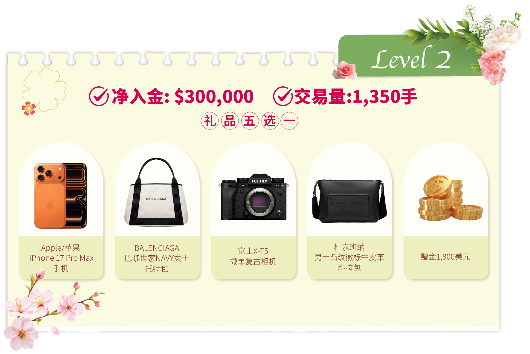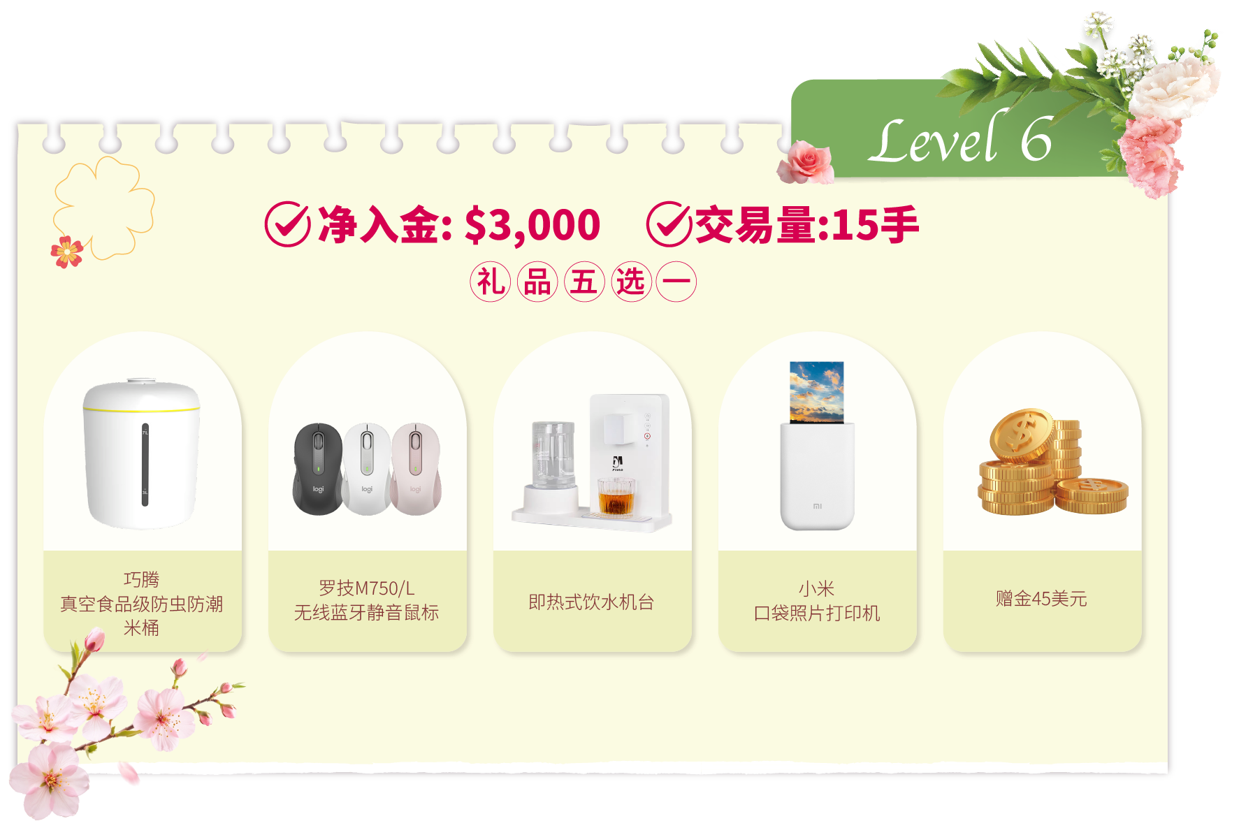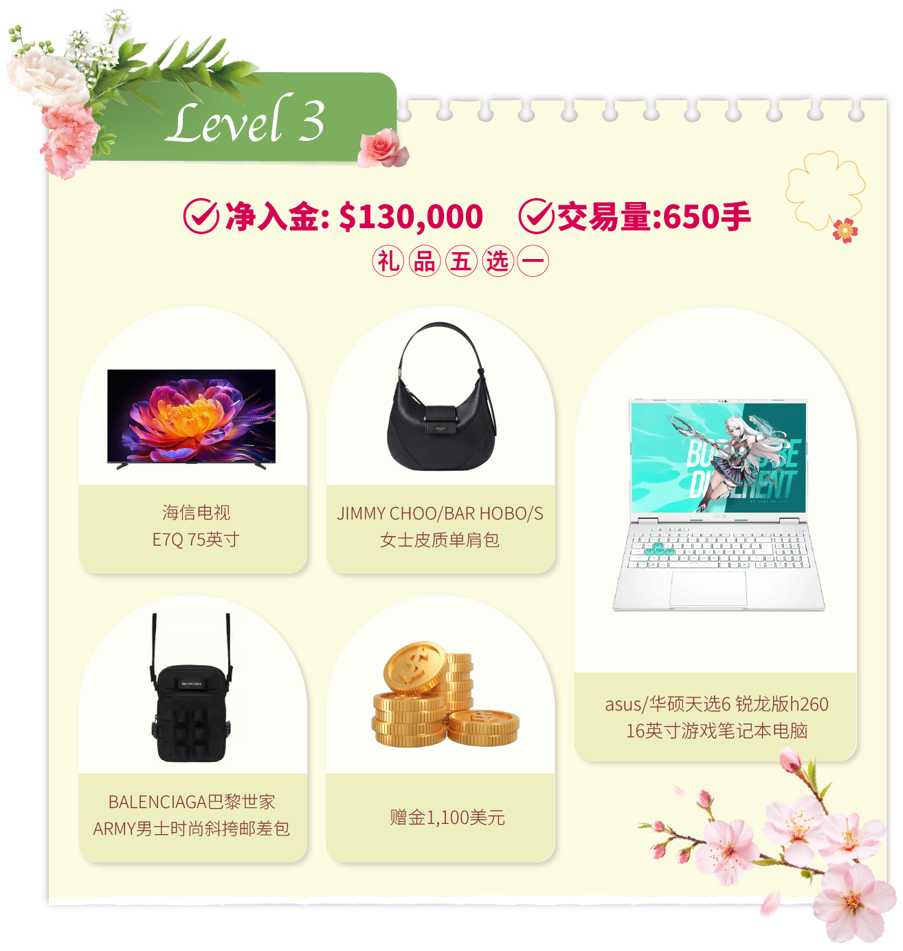 • 活动结束后的奖品发放流程:统计结果后,我们将安排专人联系各达标客户。联系时会提供一个表单链接给获奖者填写。该表单用于收集奖品选择及收货资料。达标客户需在2026年4月20日前提交表单。